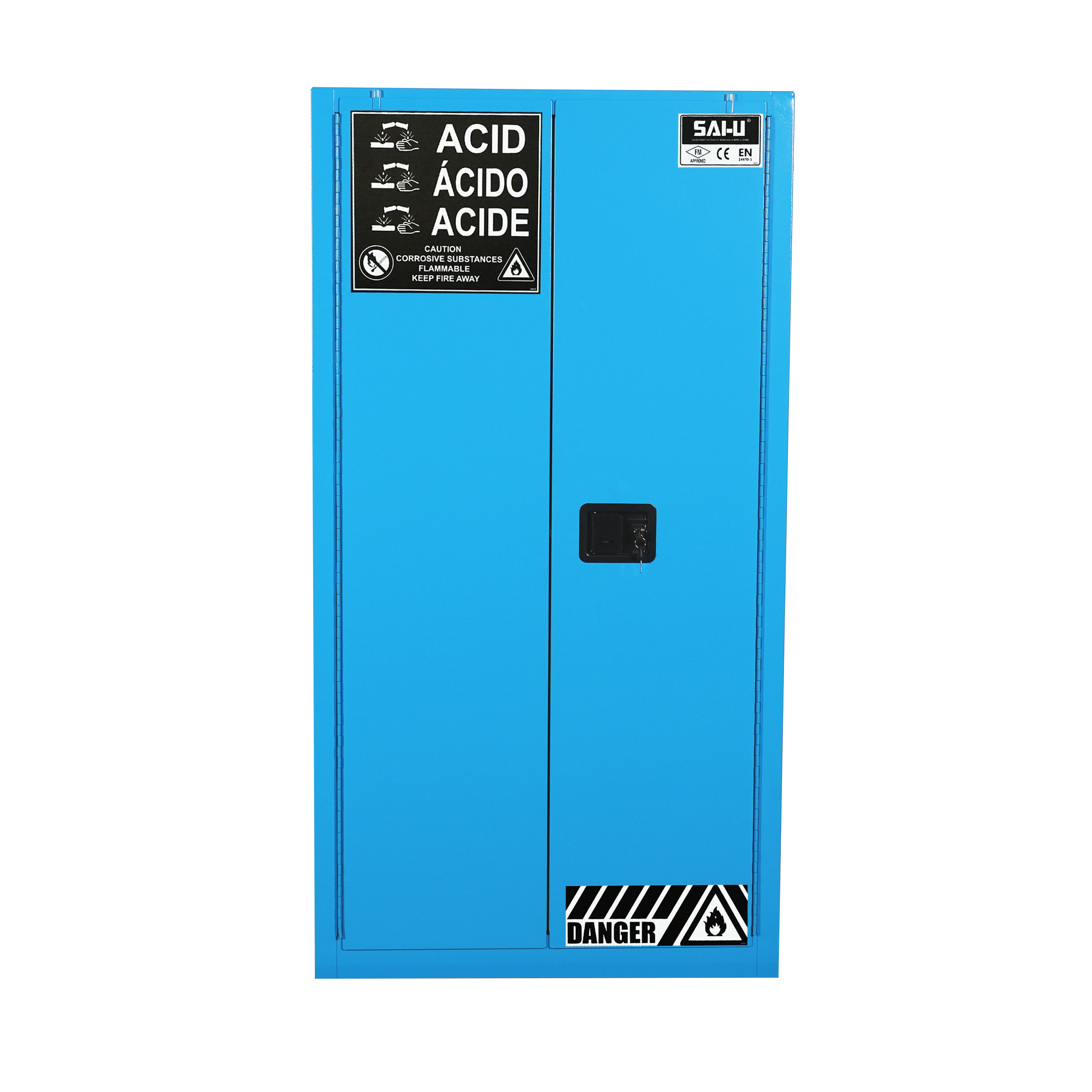 The SAI-U®FM standard safety cabinet has obtained both the US FM certification and the EU CE certification, and complies with OSHA 29 CFR 1910.106 and NFPA CODE 30 specifications, as well as the China Work Safety Administration’s Hazardous Chemicals Safety Management Regulations. According to the American FM standard, after rigorous testing, after burning for 10 minutes, all connections in the safety cabinet are kept tightly connected, the cabinet door is kept tightly closed, and the internal temperature is kept below 162,7 ° C.